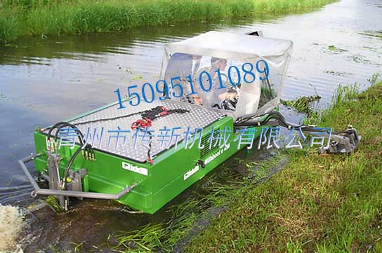 全自動(dòng)水草收割機(jī)清除水中的水草